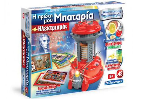Μπαταρία & Ηλεκτρισμός – Μαθαίνω & Δημιουργώ. Ακολούθησε τα βήματα του Αλεσάντρο Βόλτα και συναρμολόγησε τη δική σου μπαταρία! Μέσα από το παιχνίδι με τις κάρτες Μέμο μπορείς να μάθεις όλες τις σπουδαίες επιστημονικές ανακαλύψεις στον τομέα του ηλεκτρισμού!