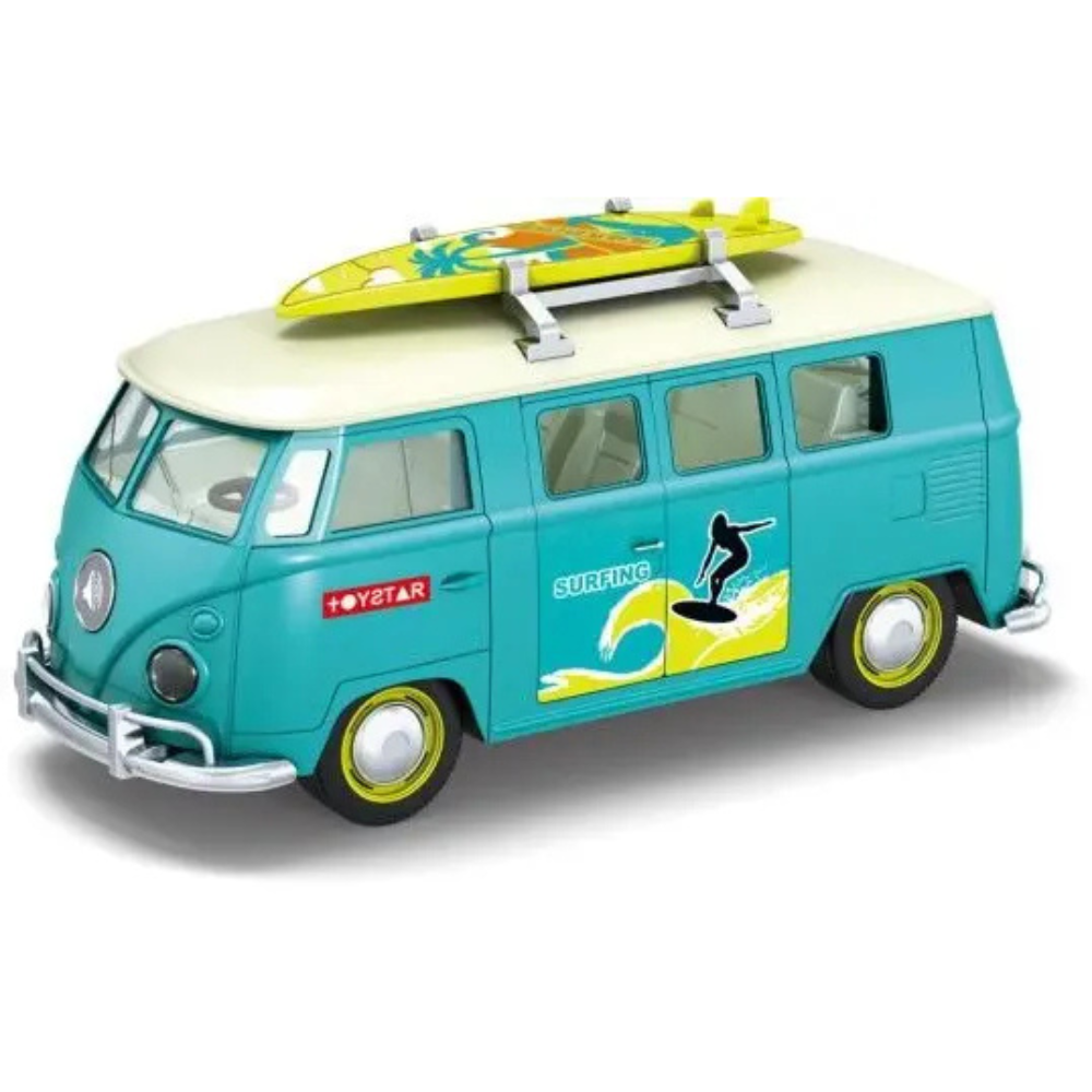 Ρετρό βανάκι με σανίδα του surf. Η σανίδα είναι αποσπώμενη και οι πόρτες ανοιγοκλείνουν. Με ρεαλιστικούς προβολείς και ήχους. Λειτουργεί με 2 μπαταρίες ΑΑ (δεν περιέχονται)